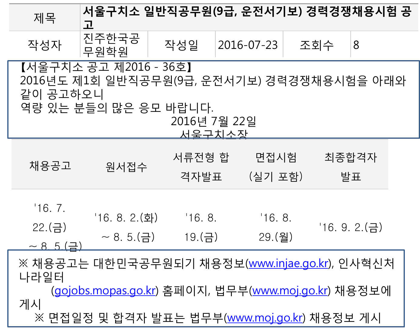 ¼¿ï±¸Ä¡¼Ò ÀϹÝÁ÷°ø¹«¿ø °æ·Â°æÀïä¿ë½ÃÇè°ø°í