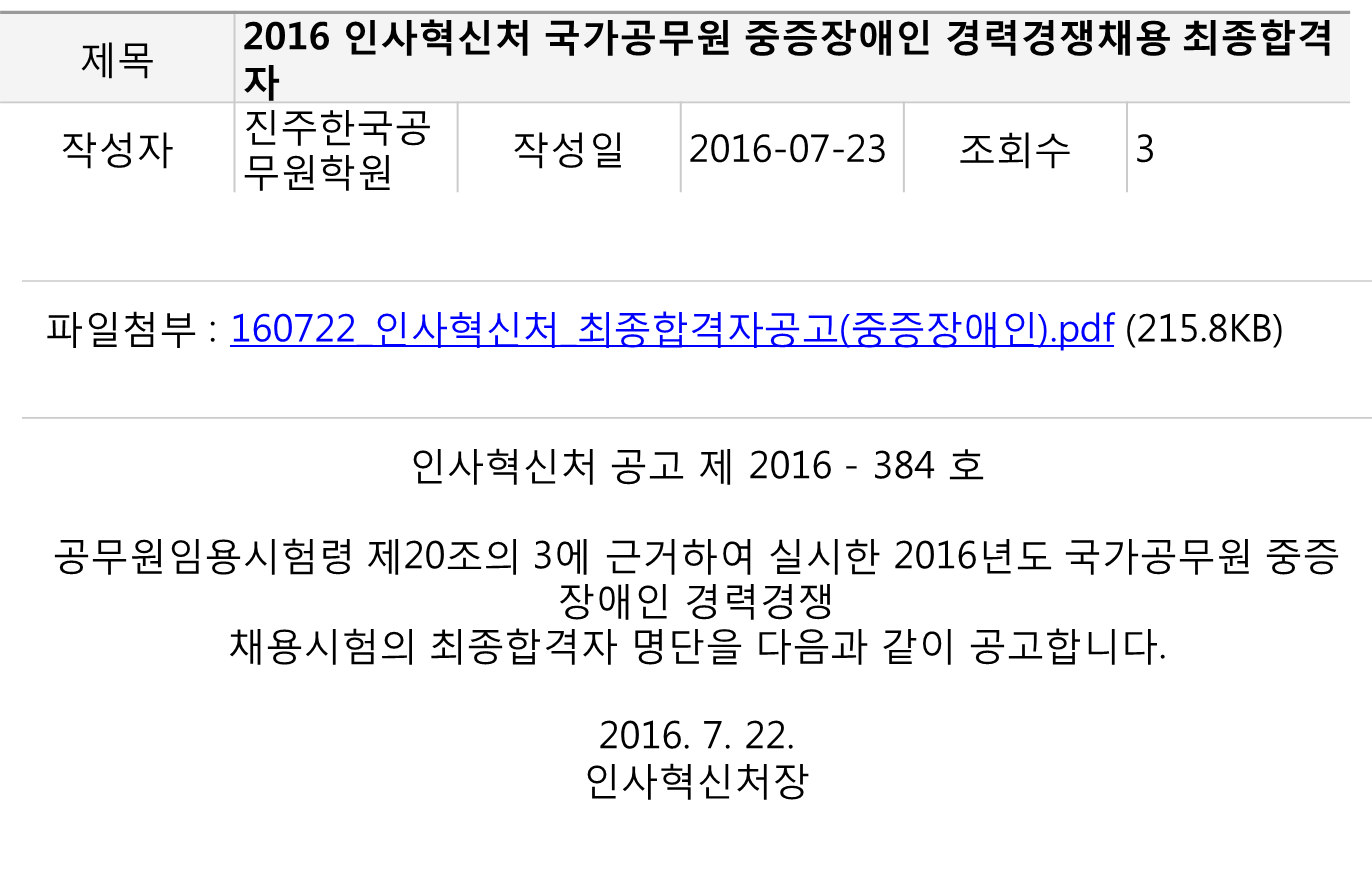 2016 ÀλçÇõ½Åó ±¹°¡°ø¹«¿ø ÁßÁõÀå¾ÖÀÎ °æ·Â°æÀïä¿ë ÃÖÁ¾ÇÕ°ÝÀÚ