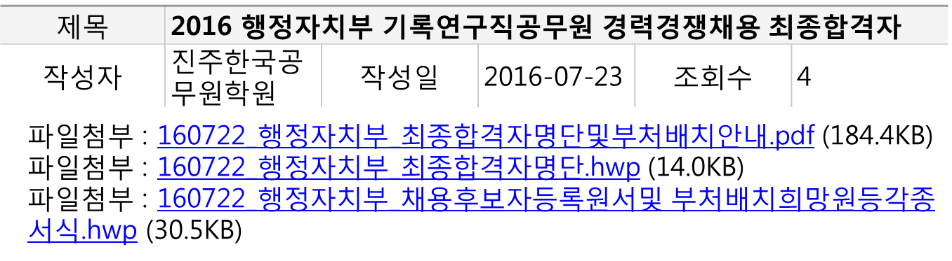 2016 ÇàÁ¤ÀÚÄ¡ºÎ ±â·Ï¿¬±¸Á÷°ø¹«¿ø °æ·Â°æÀïä¿ë ÃÖÁ¾ÇÕ°ÝÀÚ