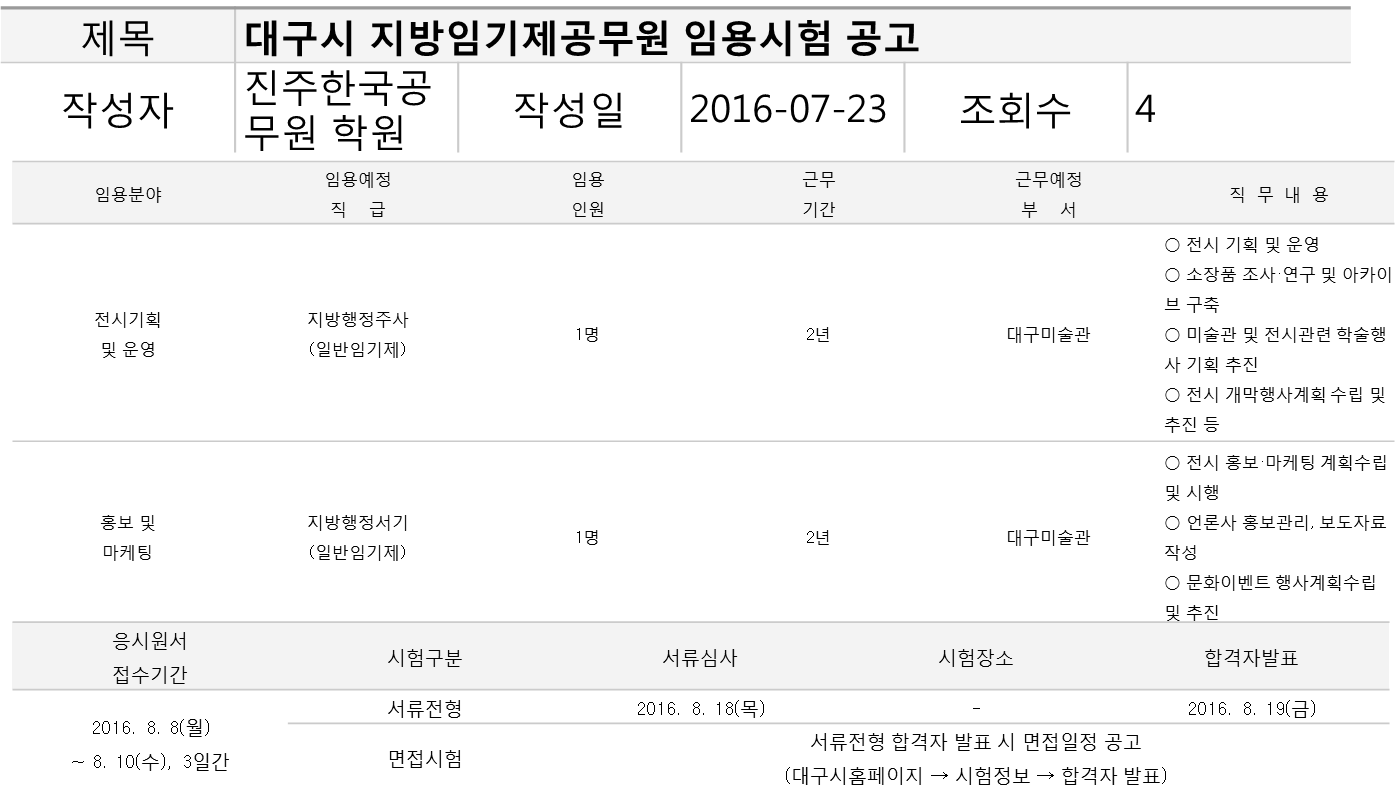 ¡Û ±³ ºÎ ó : ´ë±¸±¤¿ª½Ã ȨÆäÀÌÁö(www.daegu.go.kr) ½ÃÇèÁ¤º¸¶õÀÇ °ø°í¹®¿¡ ÷ºÎµÈ ¾ç½Ä