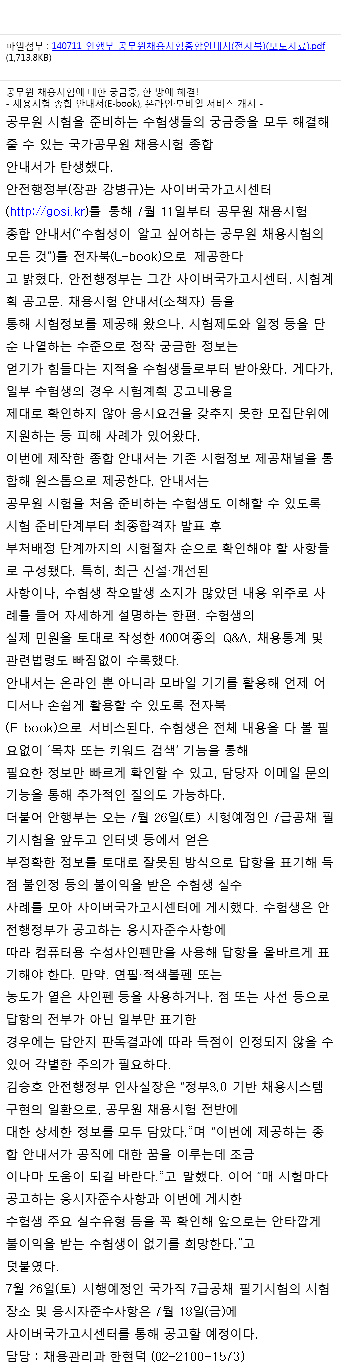 ¾ÈÇàºÎ °ø¹«¿øÃ¤¿ë½ÃÇèÁ¾Çվȳ»¼(ÀüÀÚºÏ)-º¸µµÀÚ·á